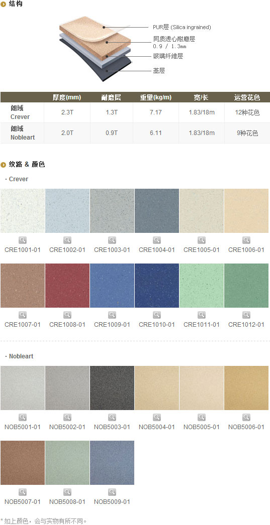 一款同时具备卓越的耐磨性与尺寸稳定性的较高档商用卷材。融独特的同质透心耐磨层和玻璃纤维层于一体,确保产品突出的稳定性能